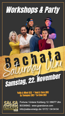 Ulm (natürlich zusammen mit Neu-Ulm) hat eine sehr aktive und attraktive Salsaszene, in der man mit sympathischen Salseras und Salseros Salsa Tanzen und noch viel mehr erleben kann!